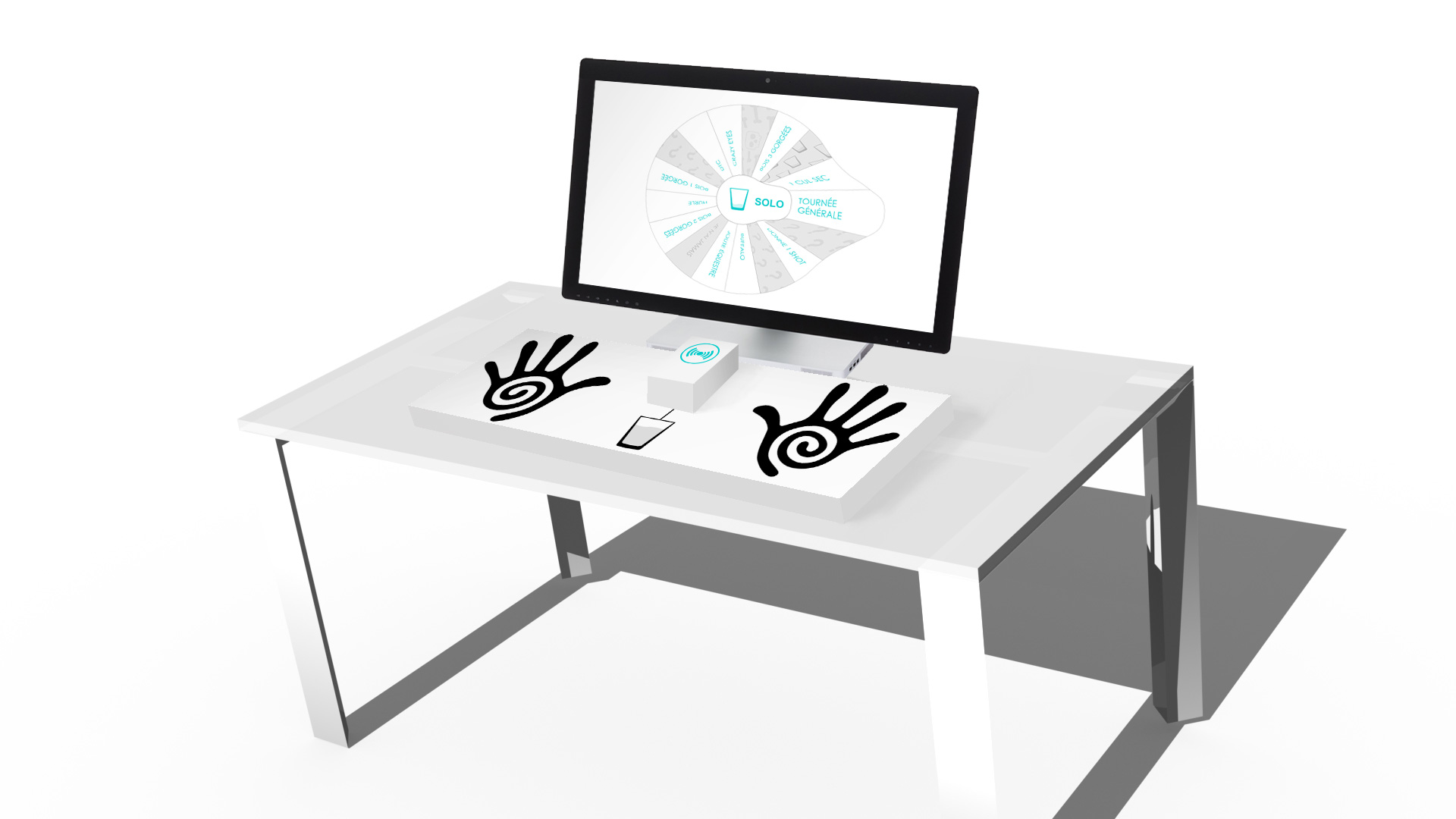 It's based on the same RFID system used on the My Nurun Party project and consists of a wheel of actions that can be launched by passing our RFID tag. But it also provides a multi-player mode with more actions and some special features.