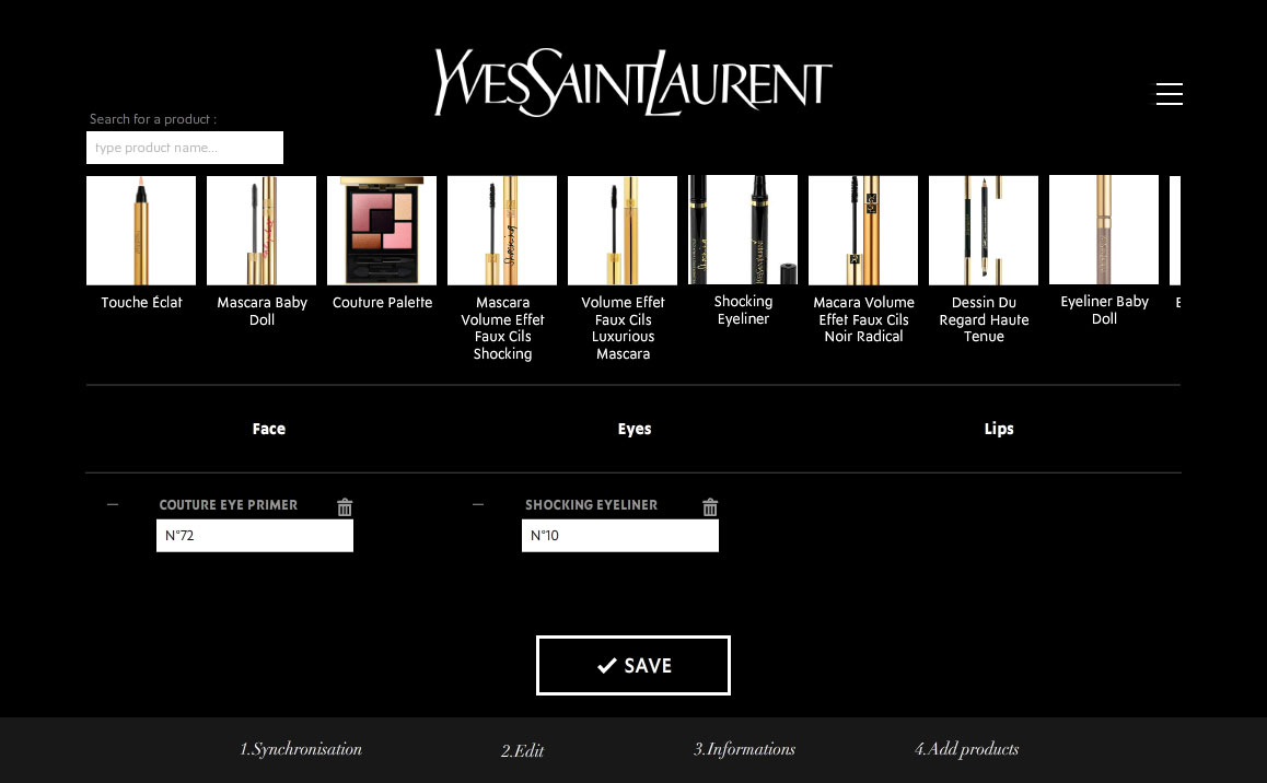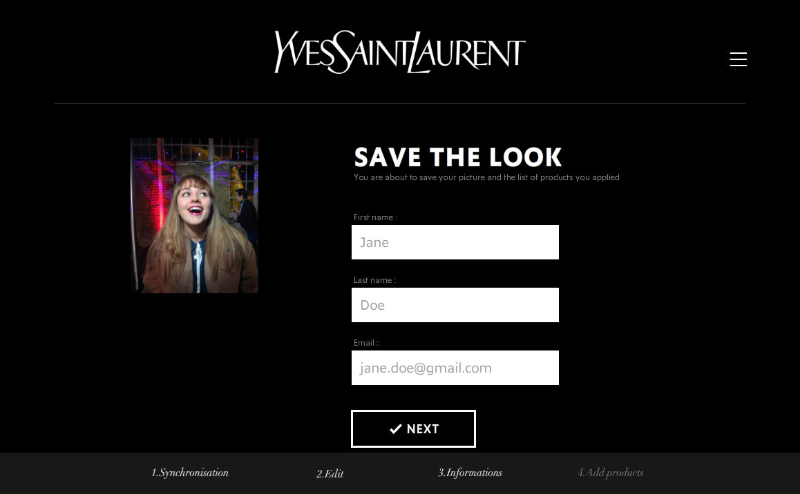 The makeup artist then reframes the pictures, enters the first name, last name and email of the client, and selects the product applied during the session.
