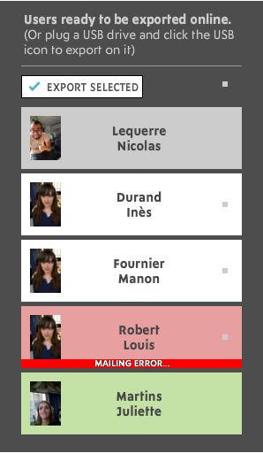 The created user is added to a queue that can be uploaded at anytime. When uploaded a public page is generated and a mail is sent to the client with a link to it.
