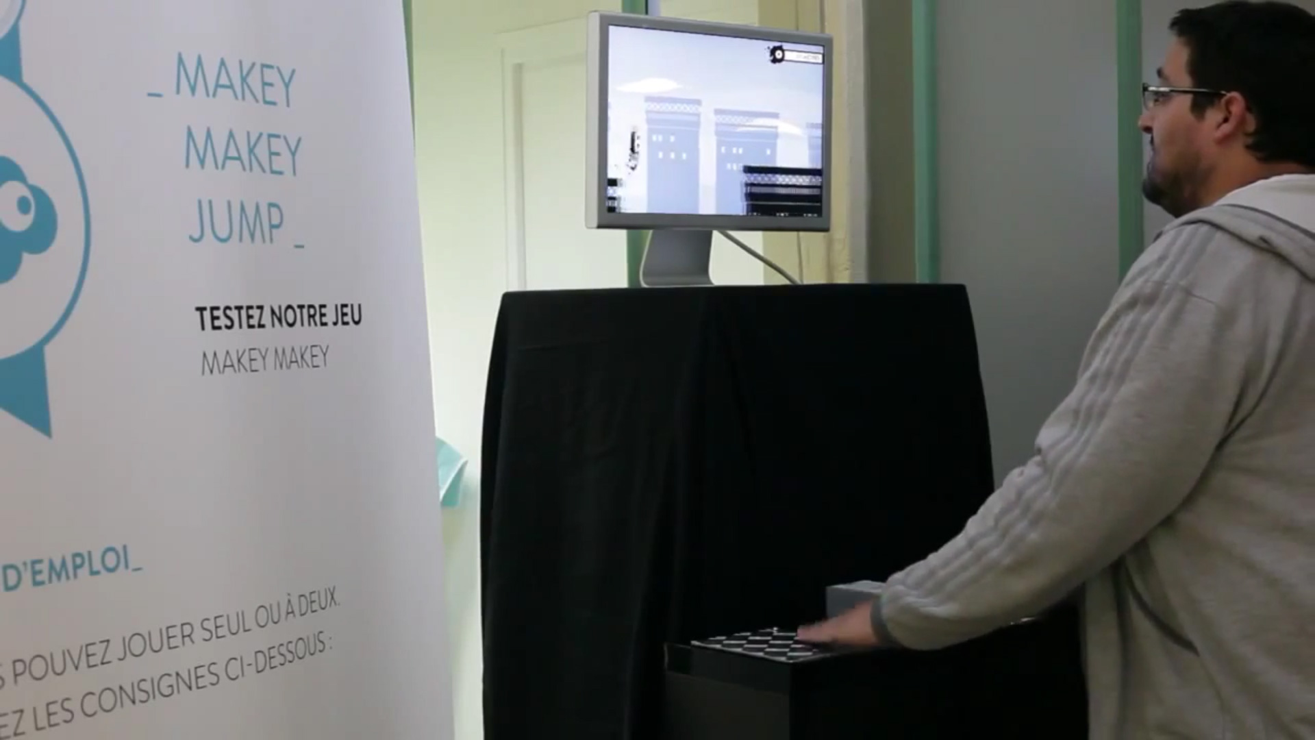 Renamed Blobjump the year after, this game was made to be played with the MakeyMakey. The idea was to make a small blob jumping by slapping your hand with someone.