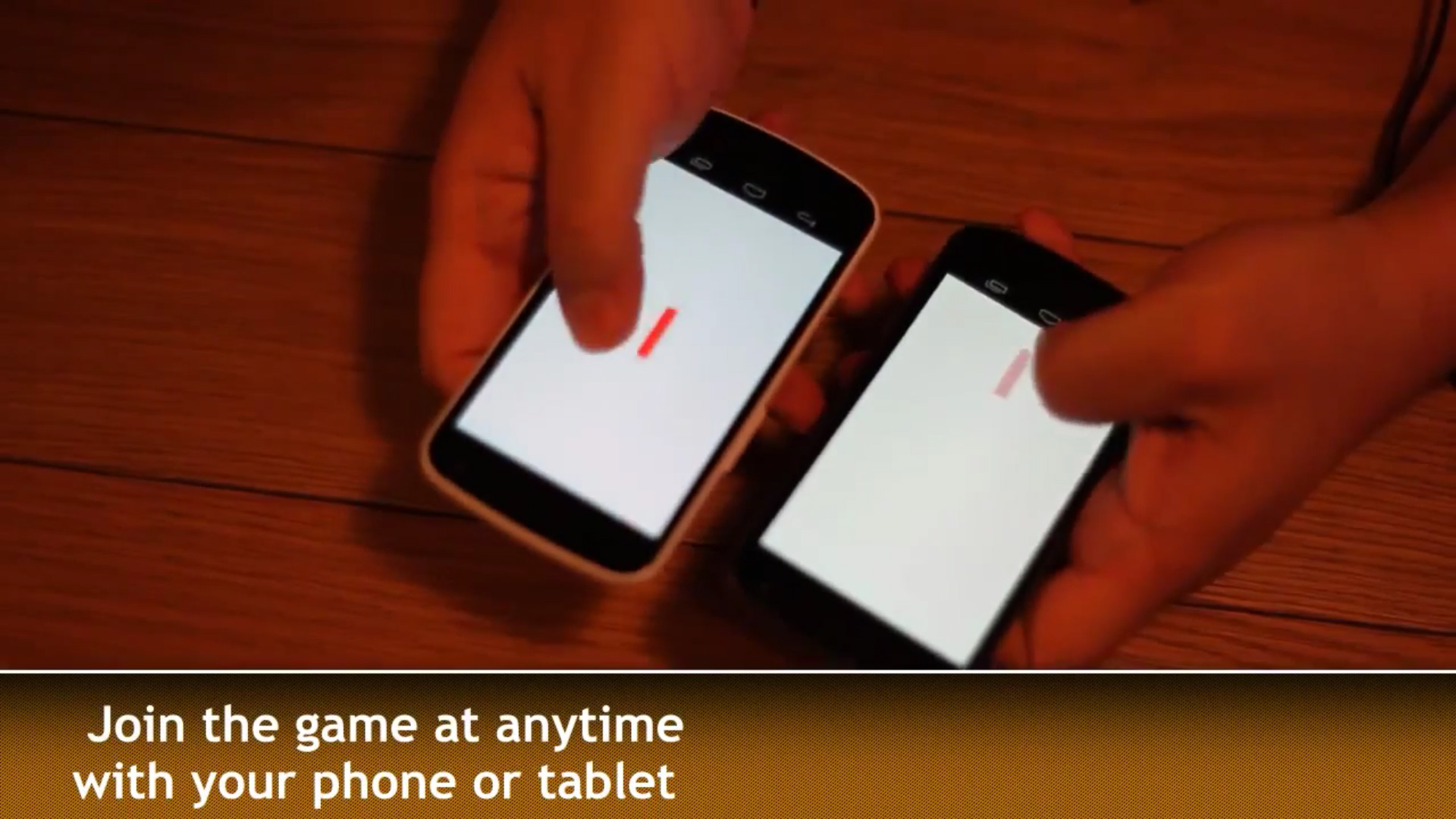 Thanks to a mobile app, any guest could join a multiplayer pong game on the same screen. Multiplayer meaning from 3 to infinite players. Every player have its specific color and the same amount of point at the begining of the game. Many balls are thrown consecutively and everytime someone misses a ball he also looses a point until there are no more ball on the board.